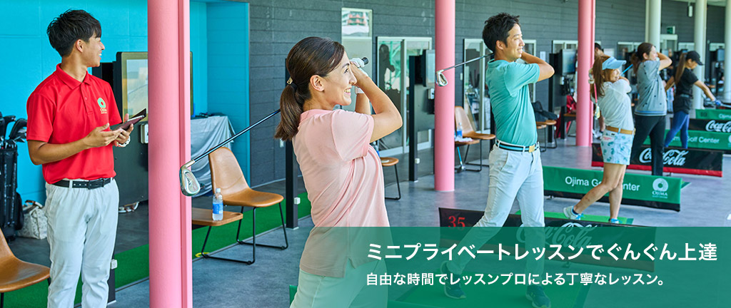 大島駅から徒歩3分、スクール生専用貸しクラブがあるのでご自分のクラブは無くてもOK、手袋だけご持参ください。