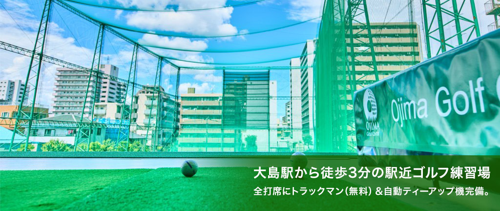 大島駅から徒歩3分、スクール生専用貸しクラブがあるのでご自分のクラブは無くてもOK、手袋だけご持参ください。